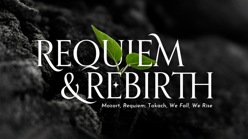 Experience the profound beauty of Mozart’s timeless Requiem in D Minor (KV 626) paired with the contemporary power of Timothy Takach’s We Fall, We Rise. This moving concert explores themes of loss, transformation, and renewal through two masterworks separated by centuries yet united in their emotional depth. Mozart’s final composition, completed by his student Franz Süssmayr, stands as one of the most beloved works in the choral repertoire, while Takach’s We Fall, We Rise offers a modern meditation on resilience and hope. Join us for an unforgettable evening that celebrates the eternal cycle of endings and new beginnings. This concert will be live-streamed. The live stream is separately ticketed. Live-stream tickets will go on sale on October 15th.
